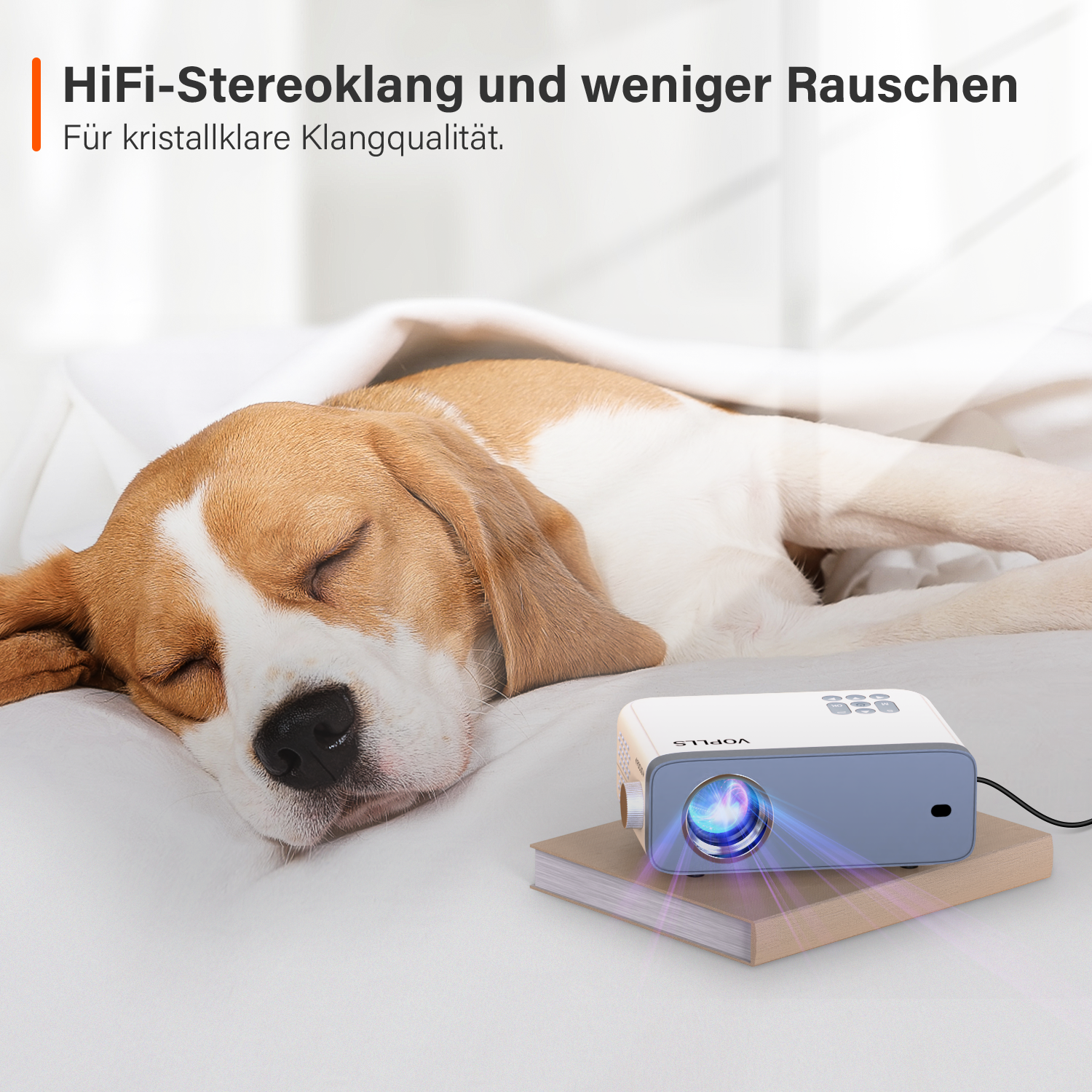 | 【Hi-Fi-Stereo-Sound und Rauschunterdrückung】Der VOPLLS beamer mini verfügt über integrierte Hi-Fi-Stereolautsprecher und bietet originale Audiotreue mit kristallklarer Klangqualität. Verfügt außerdem über einen Audioausgang zum Anschluss von Headsets oder Lautsprechern, um Ihr Seh- und Klangerlebnis zu verbessern. Durch den Einsatz modernster Geräuschreduzierungstechnologie wird das Lüftergeräusch des VOPLLS heimkino beamer um 80 % reduziert und die Wärmeableitung ist effektiver. |