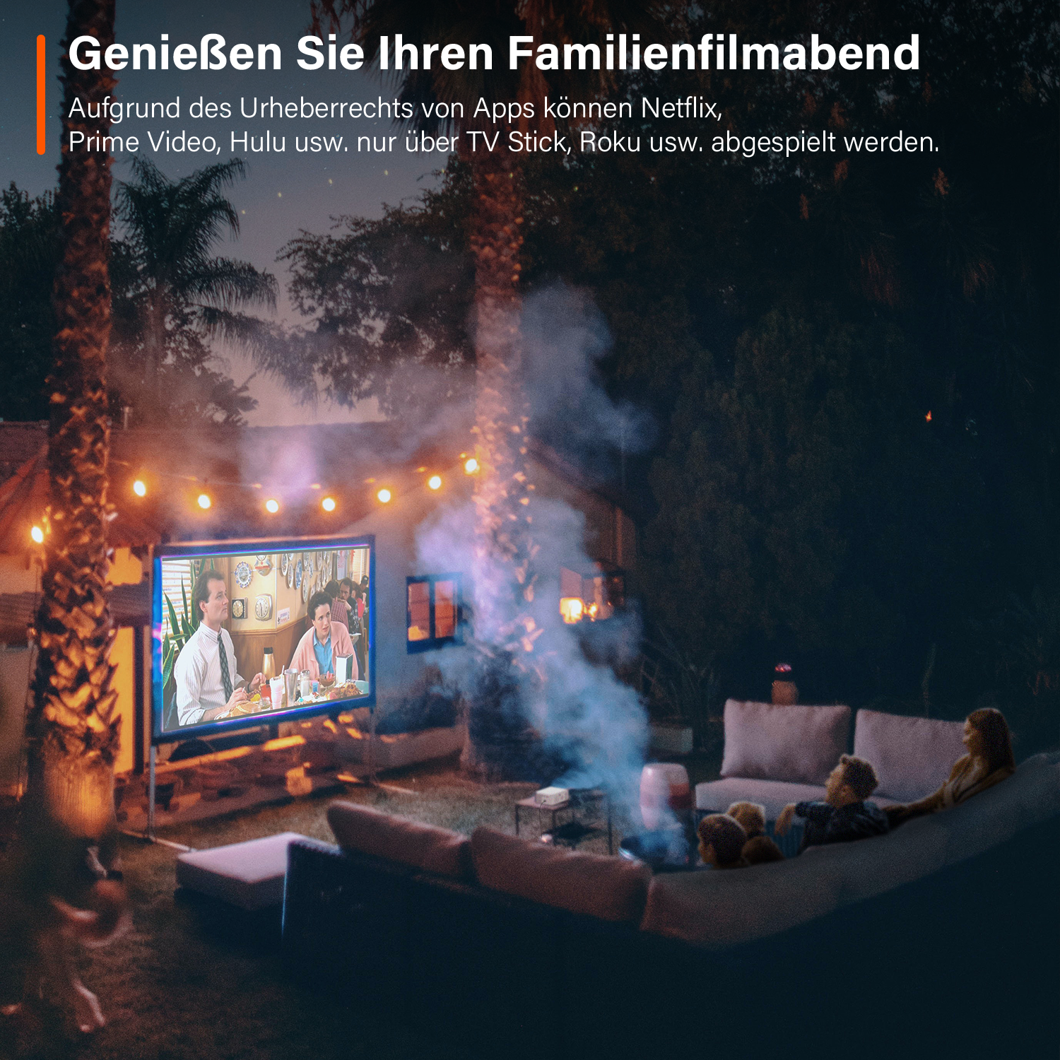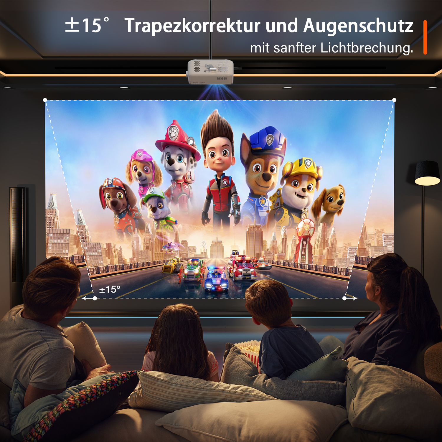 | 【Große Projektionsgröße】Die 210 Zoll große Projektionsfläche sorgt für ein beeindruckendes Seherlebnis. Mit dem beamer handy können Sie die fröhliche Heimkinozeit mit Ihrer Familie drinnen oder draußen genießen. Der beamer outdoor bietet eine Projektionsgröße von 35 Zoll bis 210 Zoll mit einem Projektionsabstand zwischen 3,7 Fuß und 23,6 Fuß. |