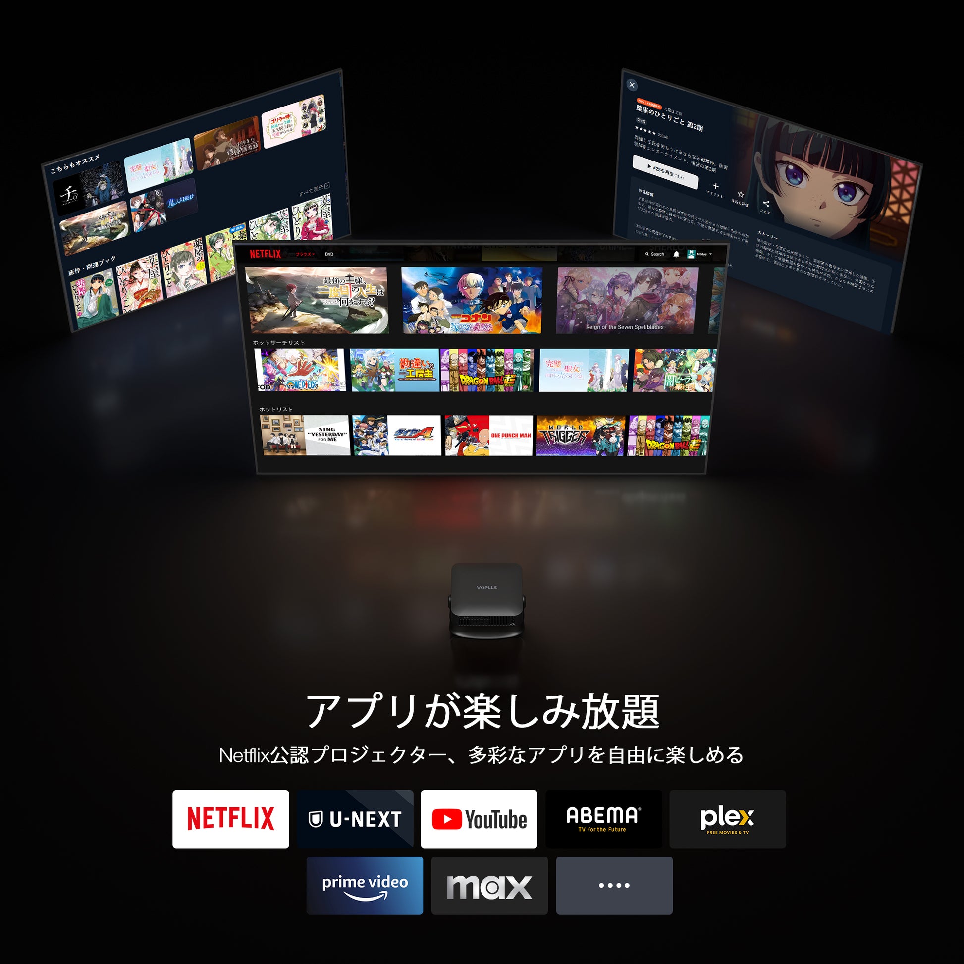 - 【Netflix公式認証プロジェクター】本プロジェクターは従来のAndroid海賊版システムより、複雑なバージョン要件がないため、クラッシュ、起動不可、Netflixサインイン不可などの問題が一切なし!面倒な設定や外部デバイスの接続なしで、事前インストール済みのNetflix/YouTube/U-NEXT/ABEMA/Huluなどで、手軽に数百万ものストリーミングサービスにアクセスでき、お気に入りの番組や映画をシームレスに楽しめます。